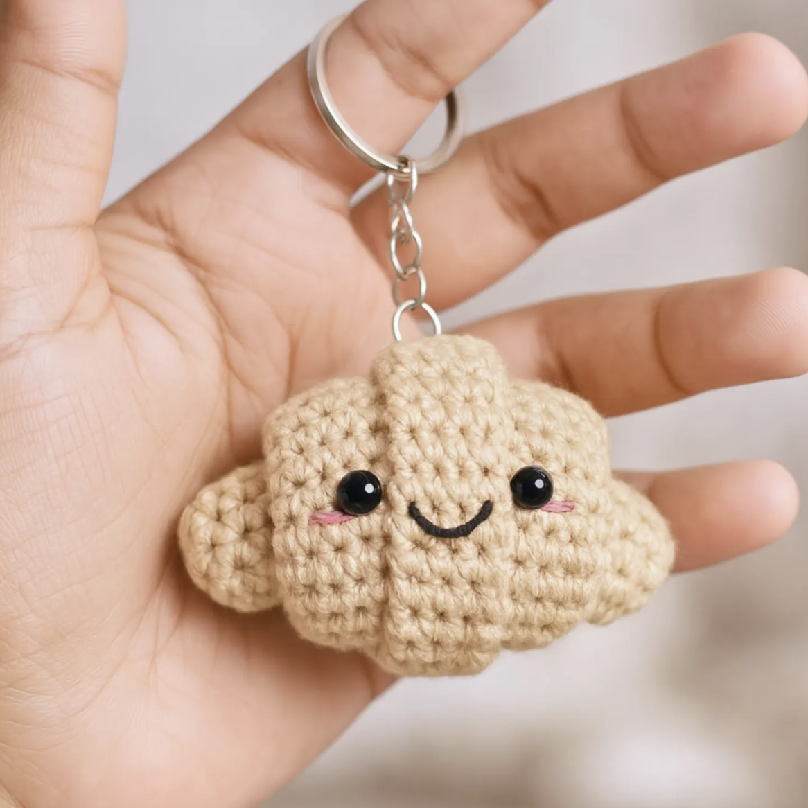 Ooh là là! This adorable croissant keychain is très mignon and will instantly transport you to a cozy café in Paris—coffee in hand, flaky pastry on the plate, and zero worries in sight. Whether you say bonjour to it every morning or gift it to your favorite amie, this buttery-soft buddy is the perfect little project for anyone who dreams in carbs and crochet!