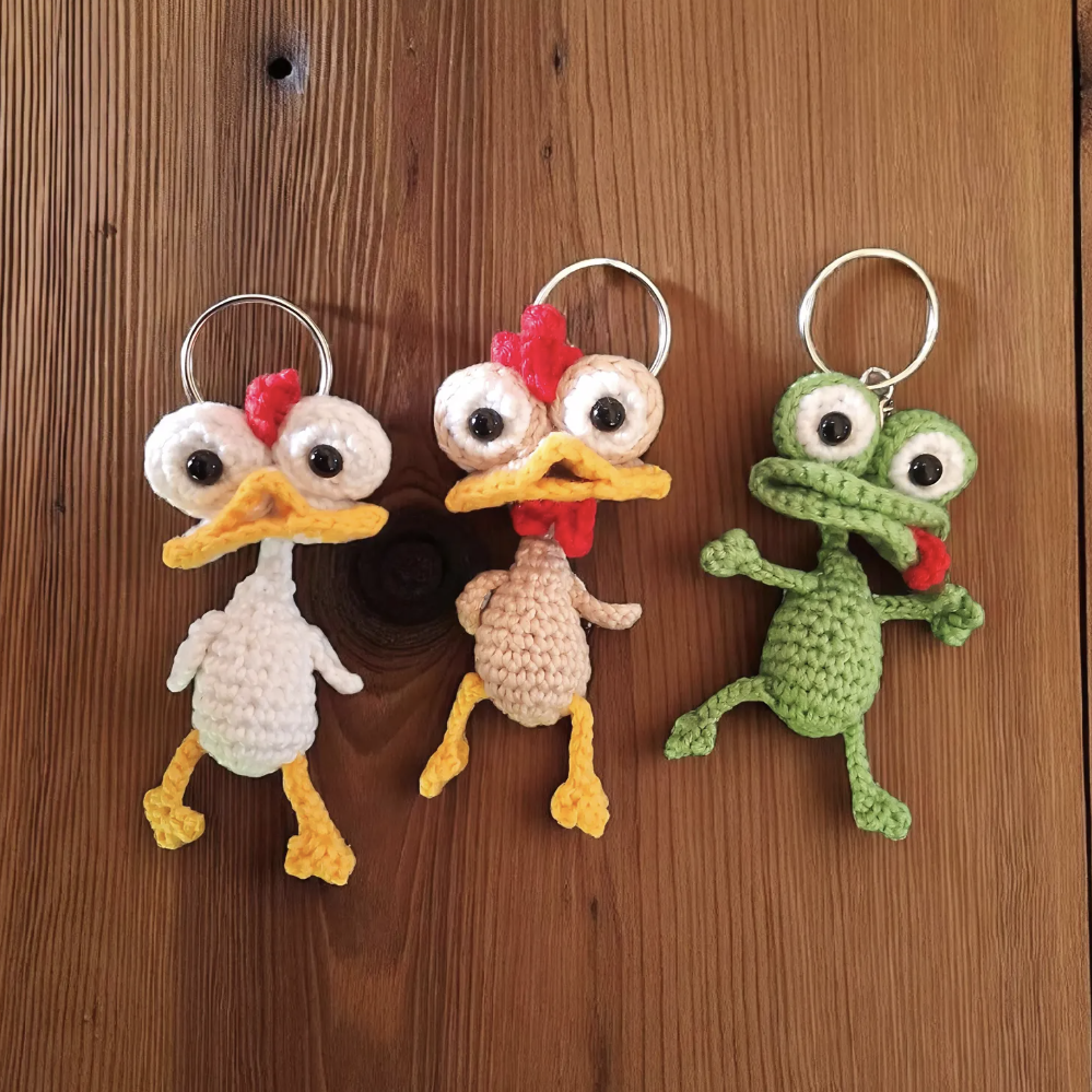 Absolutely unhinged in the best possible way. These wide-eyed crochet keychains are hilarious, chaotic, and completely lovable. Whether you go for the derpy chicken, the startled rooster, or the frog with serious main character energy, this pattern is guaranteed to turn heads (and spark giggles). The perfect gift for anyone who appreciates weird, wonderful, and wildly fun crochet!